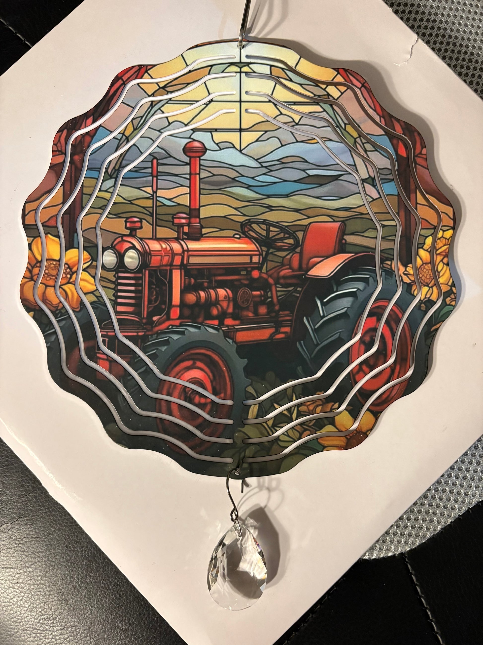 Bring a touch of country sunshine to your porch or garden with this vibrant 8” metal windspinner featuring a classic red tractor scene! 🌅 Watch it twirl and shimmer as the breeze dances through—each spin catches the light just right, especially with its sparkling crystal charm below. ✨
